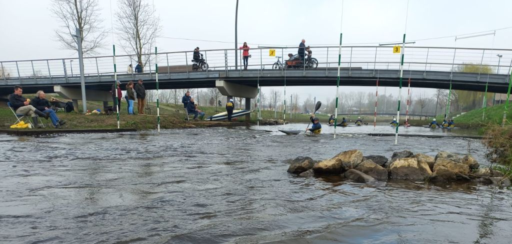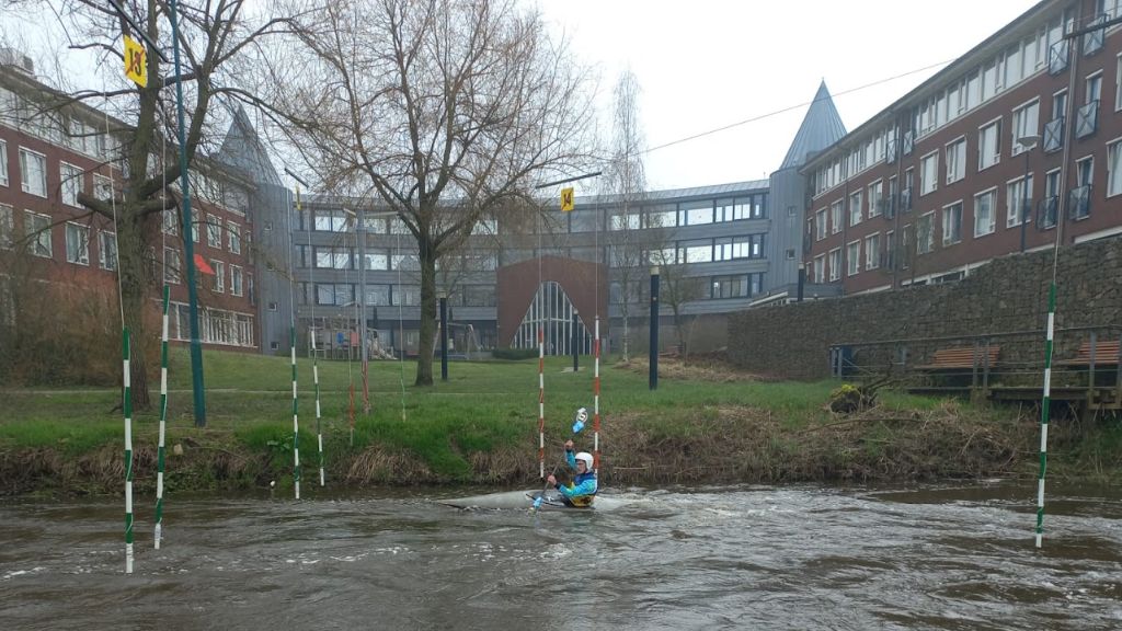 Een wintercup wedstrijd is eigenlijk geen wedstrijd in de strikte zin. Het belangrijkste doel is om te zien hoe je er conditioneel en technisch voorstaat na een winterperiode trainen. Het is meer een training waarbij je vier keer kort na elkaar het parcours vaart en je tijden worden bijgehouden. Vandaag hebben we dan nog eens de extra luxe dat er vrijwilligers langs de kant staan als poortscheidsrechter. Hartelijk dank aan de organiserende vereniging de HKC.