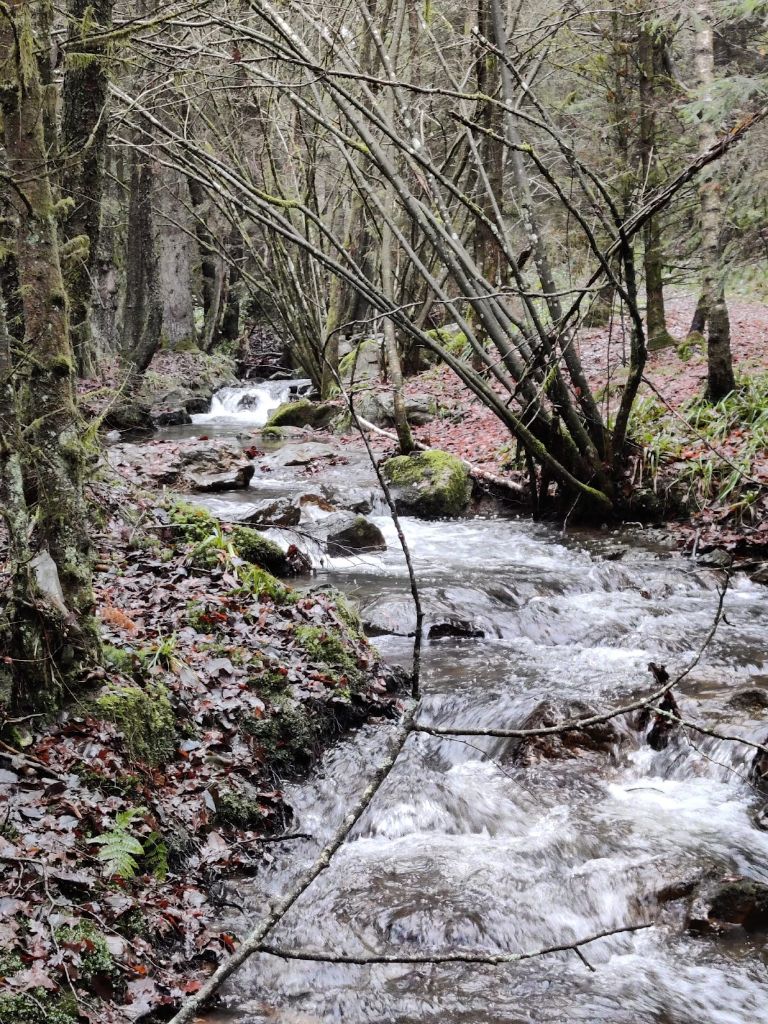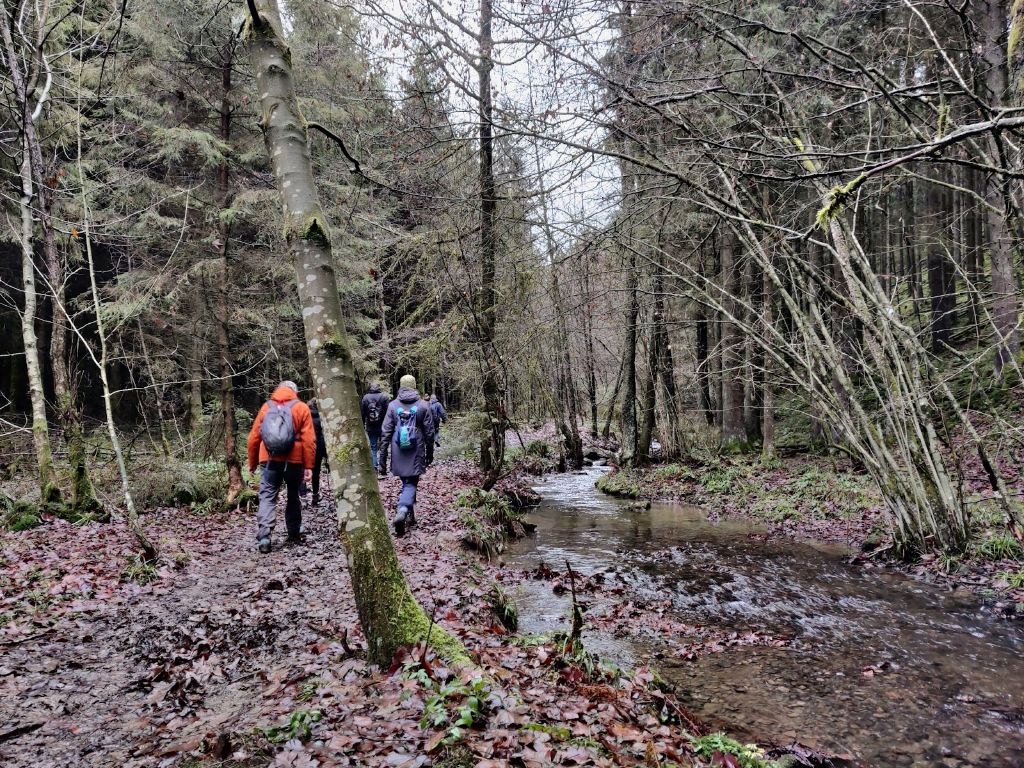 Het was mooi, niet te koud, wel wat vochtig. Hoe kan het dat het regent, overal drassig is, en dat er toch niet genoeg water in de rivieren staat? De Ardennenspons was in ieder geval aardig gevuld. De regen duurde niet al te lang en mijn broek werd er niet eens nat van. De Roannay zag er alleen vaarbaar uit voor de legokano van Laura, maar die was helaas niet mee. Wel weer een mooi rivierdal met op een stuk hele oude bomen met bordjes erbij van de hoogte. Volgens mij was de hoogste rond de 50 m. Best netjes.