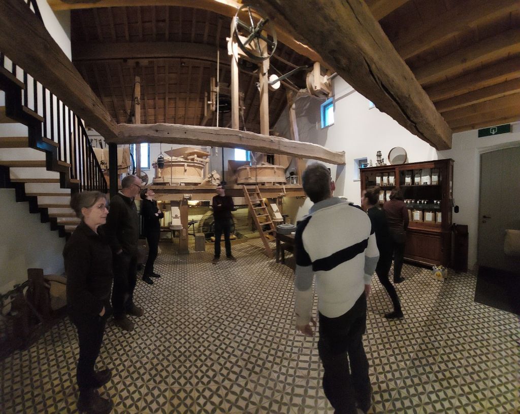 Op het eindpunt aangekomen stelde Hans voor om bij hun thuis een frietje te eten. Dat klonk als een goede afsluiting van het weekend. Eerst kregen we nog de uitgebreide rondleiding door hun prachtige B&B en watermolen “de Smokkelmolen” en daarna kwam het bier (en de thee) op tafel met daarbij natuurlijk de kaasjes en worstjes waar Hans bekend om staat.
