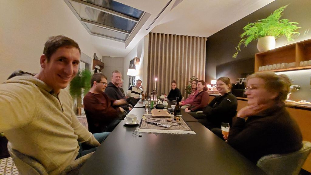Toen iedereen op vrijdagavond in het hele mooie, grote huis was aangekomen kwam Bram met kritische vragen over waterstanden en toen bleek de Salm helemaal niet genoeg water te hebben. Er stond ruim minder water dan een maand geleden toen we de Salm al afgeschraapt hadden. Zaterdagavond werd dus al snel besloten dat we zondag zouden gaan wandelen. Dit keer ging de discussie dan ook niet over welke rivier we zouden gaan varen, maar langs welke rivier we zouden gaan wandelen. Deze discussie werd afgewisseld met wat spelletjes en natuurlijk weer veel te veel lekkere hapjes. Genoemde opties: Ninglinspo, Hoëgne, Trôs-Maret, of toch iets wat nog voor iedereen onbekend was? Uiteindelijk werd het een wandeling waarin we op de terugweg langs de Roannay liepen.