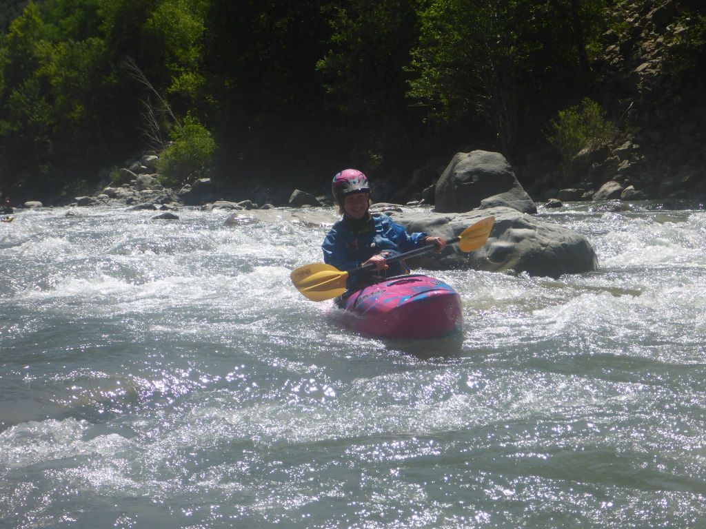 De Ubaye. Twee jaar geleden hebben we ‘m twee keer in één BASF gevaren. Daarvan herinnerde ik me nog dat het niet mijn ding was die rivier. Te ondiep, met allerlei keien die je uit balans brengen, en ook zwemmen is niet aangenaam. Maar nu stond ‘ie ‘n stuk hoger, dus ik had er meer vertrouwen in.