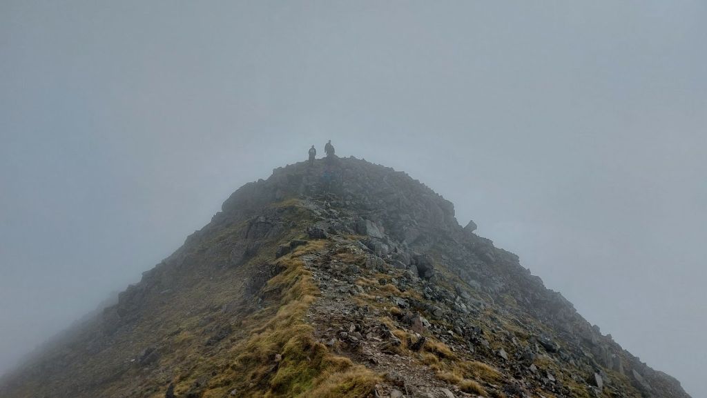 Route: omhoog door de Lost Valley, op de bergkam rechtsaf, op Bidean nam Bian @ 1150 rechtsaf naar beneden, op Stob Coire nan Locham (1115) linksaf