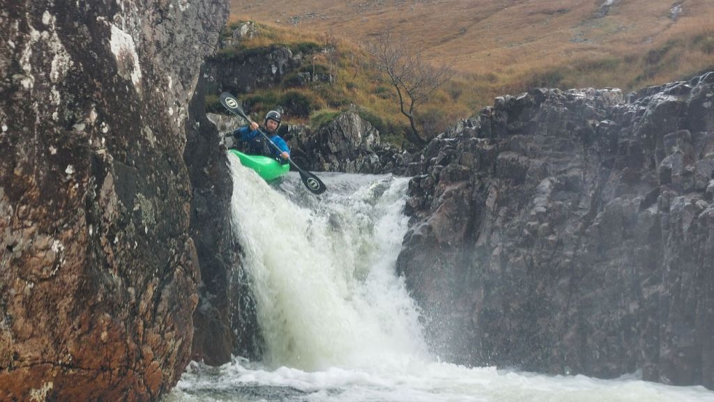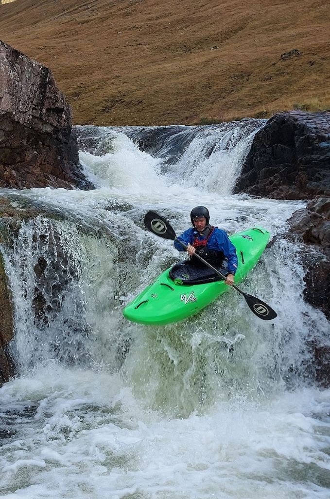De Middle Etive is voor veel kajakkers een droomrivier: een opeenvolging van watervalletjes, glijbanen en korte drops in een schitterend dal. Ondanks het lage water klonk het geruis van de eerste passage, Triple Falls, als muziek in de oren.