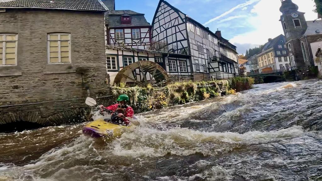 Je wil het onder controle hebben, het gevoel hebben dat je steeds weer vooruit gaat, weer nieuwe, andere rivieren kan gaan varen, dezelfde rivieren met nog hogere waterstand gecontroleerd kan bevaren, met uiteindelijk het hoogtepunt dat meestal in het voorjaar of zomer ligt, in de Alpen een of meer rivieren varen waarvan je nooit had gedacht dat je het kon en waardoor je op plekjes komt waar een normale sterveling met de benenwagen nooit zal kunnen komen. Dan weet je het zeker! Daarom vaar ik wildwater! En ook al maak je die weken in de Alpen niet al te vaak mee, zo'n dagje op de Boven Rur, dat komt er heel dicht bij in de buurt! Alleen jammer dat het niet overdekt en verwarmd was.